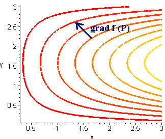 If f is differentiable at (a,b) and grad f is nonzero at (a,b) then grad f is perpendicular to the level curve through (a,b).