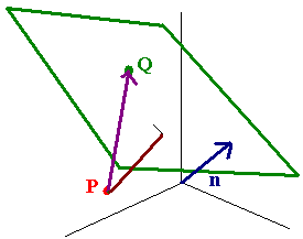 Let P be a point and Q be a point on a plane with normal vector n, then the