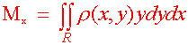 Suppose that r(x,y) is a continuous density function on a lamina R.  Then the moments of mass are