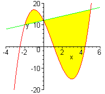 C) (10 Points) Find the volume of the solid that is formed by revolving the region bounded by y = x3 - x and y = 3x around the line x = 5. Solution