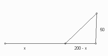 2. A lifeguard swims at a rate of 5 feet per second and can run at a rate of 15 feet per second. Suppose that the lifeguard spots a drowning child in the ocean 200 feet down the shore and 50 feet out at sea. How far should the lifeguard run until (s)he begins swimming?