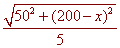 x = 200 - 25/ @ 182.3 feet