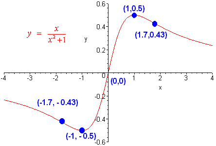 A) We set the first derivative equal to zero. This is the same as setting the numerator equal to zero. We have 1 - x2 = 0 (1 + x)(1 - x) = 0 x = -1 or x = 1 Use the second derivative test to find