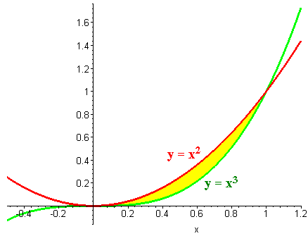 Area Between Two Curves Recall that the area under a curve and above the x-axis can be computed by the definite integral. If we have two curves y = f(x) and y = g(x) such that