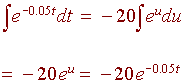 Use integration by parts and note that with the substitution u = -0.05t du = -0.05dt or -20du = dt we get