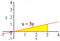 We can switch the order of integration. The region is bounded above and below by y = 1/3 x and y = 0. The double integral with respect to y first and then with respect to x is