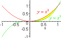 Example Set up the double integral that gives the area between y = x2 and y = x3. Then use a computer or calculator to evaluate this integral.