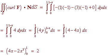 We can write the surface as z = 1 - x - y Using Stokes theorem we get