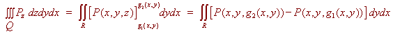 We have on the top surface Pk . N dS = Pk . ( (-g2)x i - (g2)y j + k) = P(x,y,g2(x,y)) On the bottom surface, we get Pk . N dS = Pk . ( (g1)x i + (g1)y j - k) = -P(x,y,g1(x,y)) Putting these together we get
