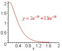 y'' + 10y' + 25y  =  0        y(0)  =  2,    y'(0)  =  3