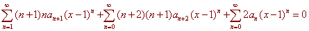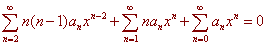 Now we can equate coefficients to find 2a2 + 2a0 = 0 (n + 1)nan+1 + (n + 2)(n + 1)an+2 + 2an = 0 The first equation says that a2 = -a0 The recursion relationship says
