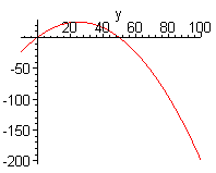 The exponential model has the shortcomings of assuming that the population can increase without bound. Usually there is a limit to the population bases on space, food, and other resources. To handle this, we include a factor that will equal zero when this limit is hit. If the limit is K, then the adjusted model becomes The graph of f(y) = 2y(1 - y/50) is shown below