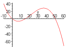 We see that if the population begins above 15, the population will increase without bound and if the population begins below 15, the species will become extinct . We call y = 15 a unstable equilibrium. If we combine the two models, we get a model for a population with both a carrying capacity and a threshold. In general the equation is dy/dt = -ry(1 - y/T)(1 - y/K) The graph of f(y) = -2y(1 - y/15)(1 - y/50) is shown below