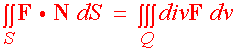 Notice that the outward pointing normal vector is upward on the top surface and downward for the bottom region. We also note that the divergence theorem can be written as