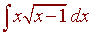 Solution Notice first that the square root is what makes this problem difficult. Hence we let u = x - 1 du = dx This seems not to get rid of the x term, but notice that if we add 1 to both sides, we get x = u + 1 Now we can substitute to get