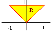 Example Find the double integral of f(x,y) = 3y over the triangle with vertices (-1,1), (0,0), and (1,1). Solution If we try to integrate with respect y first, we will have to cut the region into two pieces and perform two iterated integrals. Instead we integrate with respect to x first. The region is bounded on the left and the right by x = -y and x = y. The lowest the region gets is y = 0 and the highest is y = 1. The integral is
