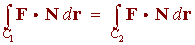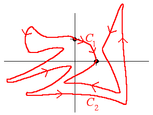 B. Let F = 3xy i + cosx j and let C1 and C2 be as shown below. Then