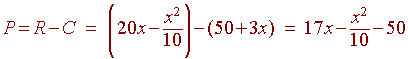 and the profit P is the revenue minus the cost. When we say marginal, we mean the derivative with respect to