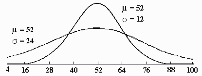 If the standard deviation is small then the distribution curve will have most of its area centered near the mean, while if the standard deviation is large the area will be more spread out.