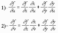 = (2x + 2 - y)(2t) + (-x + 2y)(3t2 - 2t) When t = 2, x(2) = 5 and y(2) = 8 - 4 = 4 hence df/dt = 2(5 + 2 - 4)((2)(2) + (-5 + 2(4))(3(4) - 2(2)) = 48 Exercise: Let f(x,y) = 2x -3xy and x(theta) = 2cos theta and y(theta) = 2sin(theta) Find df/dtheta IV. The Chain Rule for 2 Variables Let f(x,y) be a 2 variable function and x = x(u,v) and y = y(u,v) then