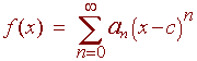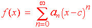 Then we call f(x) a power series centered at x = c.  The domain of f(x) is called the Interval of Convergence and half the length of the domain is called the Radius of Convergence.
