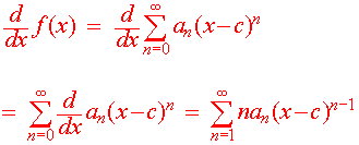 then f(x) is continuous, differentiable, and integrable on that interval (not necessarily including the endpoints).  To obtain the derivative or the integral of f(x) we can pass the derivative or integral through the S.  In other words