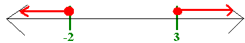 Solution: We set up the inequality x2 - x - 6 > 0 and use our steps of quadratic inequalities to solve. Factoring we get (x - 3) (x + 2) > 0 Putting -2 and 3 on a number line, gives three regions. The table shows