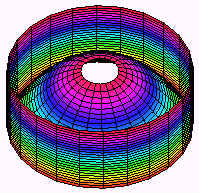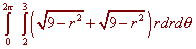 Solution The picture is shown below The region this time is the annulus (washer) between the circles r = 2 and r = 3 as shown below. The sphere has equation x2 + y2 + z2 = 9 In polar coordinates this reduces to r2 + z2 = 9 Solving for z by subtracting r2 and taking a square root we get top and bottom surfaces of