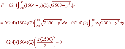 You are constructing the newest resort at the bottom of Lake Tahoe (which is 1654 feet deep).  Your resort will feature a giant vertical circular window of radius 50 feet such that the bottom of the window lies on the bottom of the lake.  How much total fluid force will the window have to withstand?  (The density of fresh water is 62.4 pounds per cubic foot).