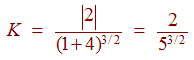 Exercise Find the equation of osculating circle to y = x2 at x = -1. Solution In order to find the unit tangent vector, we parameterize the curve as r(t) = t i + t2 j and we find r'(t) = i + 2t j r''(t) = 2 j Plugging in -1 for t gives r'(-1) = i - 2 j r''(-1) = 2 j ||r'(-1)|| =