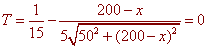 x = 200 - 25/ @ 182.3 feet
