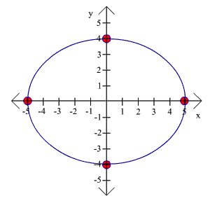 y2 Solution First identify a and b, remembering to take square roots. a = 5 b = 4 Next plot the vertices (-5,0), (5,0), (0,4), and (0,-4) Finally, connect the dots. The graph is shown to the right.