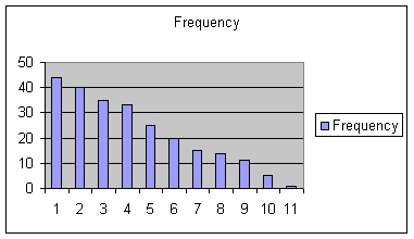 Below is a bar graph for the car data. This bar graph is called a Pareto chart since the height represents the frequency. Notice that the widths of the bars are always the same.
