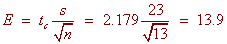 Problem 9 Thirteen brown bears in the Sierra Nevada Mountains were captured and released for a research project. Their mean weight was found to be 320 pounds with a standard deviation of 23 pounds. A. Determine a 95% confidence interval for the mean weight of brown bears in the Sierra Nevada Mountains. Notice that the sample size is small. We use tc instead of the zc. There are 13 - 1 = 12 degrees of freedom The table gives tc = 2.179 Now we can compute the margin of error