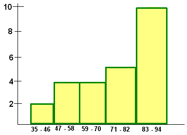 B. Construct a histogram for this data using 5 classes. We find the class width by taking the range, dividing by 5 and increase the result to the nearest whole number.