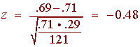 The observed proportion is p = 84/121 = .69 Now we compute the z-score. We have
