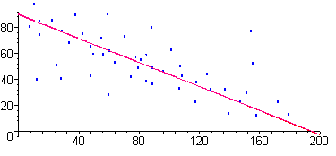 B. Use your regression line to provide a point estimate for the number of units occupied when the price per room is $100. We plug 100 into the equation y = 91.4 - .52(100) = 39.4