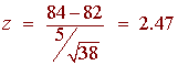 Problem 6 Do students do better on exams if they meditate for the hour just before the exam. At a large university the average score on the first exam is 82%. 38 students volunteered to go through an hour of meditation before their first exam. The meditators averaged 84% on the exam with a standard deviation of 5%. What can you conclude at a .05 level? give the P-value and interpret what it means. The appropriate hypotheses are H0: m = 82 H1: m > 82 We have x = 84 s = 5 n = 38 Since we are at a .05 level, the z-critical value is 1.645. We compute the z-score