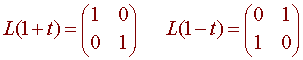 so that v = 2(1 + t) + 1(1 - t) and L(v) = L(2(1 + t) + 1(1 - t)) = 2L(1 + t) + L(1 - t)