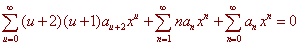 Now we can equate coefficients to find 2a2 + 2a0 = 0 (n + 1)nan+1 + (n + 2)(n + 1)an+2 + 2an = 0 The first equation says that a2 = -a0 The recursion relationship says