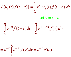 By taking inverses we get that if F(s) = L{f(t)}, then L-1{e-csF(s)} = uc(t)f(t - c) Proof We use the definition to get