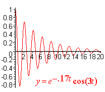 In all three cases u tends to 0 as t tends to infinity. When the damping is small compared to km, we are in the first case. After a change of variables and some trig we end up with u = Re-gt/2m cos(mt - d) Notice that u is between -Re-gt/2m < u < Re-gt/2m We can say that u is decreasing exponentially in absolute value. Below is the graph of damped oscillation.