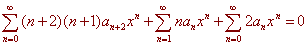 Next use the initial conditions to get a0 = 0 a1 = 1 2a2 + 2a0 = 0 Hence a2 = 0 The recursion relationship gives (n + 2)(n + 1)an+2 + (n + 2)an = 0 or