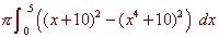 B) (10 Points). Find the volume of the solid that is formed by revolving the region bounded by y = x4 and y = x between x = 0 and x = 1/2 about the line y = -10. Solution