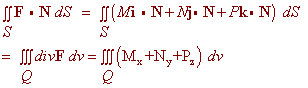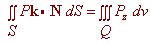 We have on the top surface Pk . N dS = Pk . ( (-g2)x i - (g2)y j + k) = P(x,y,g2(x,y)) On the bottom surface, we get Pk . N dS = Pk . ( (g1)x i + (g1)y j - k) = -P(x,y,g1(x,y)) Putting these together we get