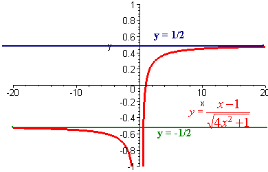 We see that there is a left horizontal asymptote at y = -1/2 and a right horizontal asymptote at y = 1/2.