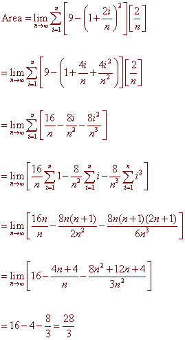 Sums to find the area of the region below the curve