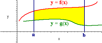 Area Between Two Curves Recall that the area under a curve and above the x-axis can be computed by the definite integral. If we have two curves y = f(x) and y = g(x) such that
