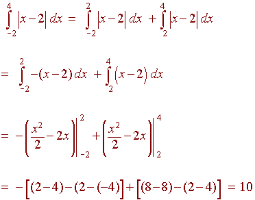 Solution The difficulty is that the absolute value does not have a nice antiderivative. However, we can strip the absolute value sign if we know that x > 2 or x < 2. We have