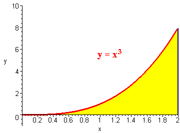Example Find the area under the curve y = x3 above the x-axis and between x = 0 and x = 2.